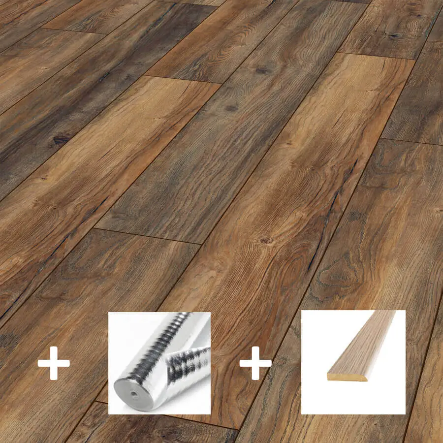 Aanbieding breed laminaat V4 Geleefd Bruin laminaat is 24,4 centimeter breed en geschikt voor zwaar huishoudelijk gebruik. Deze laminaat aanbieding wordt geleverd met een gratis 2 mm dikke foam ondervloer met aangehecht vochtscherm EN gratis plakplinten! Dit laminaat heeft een prachtige houttekening welke volstaat in elk interieur, modern of klassiek. Door de vierzijdige vgroef lijk je de kamer te vullen met echte houten planken. Daarnaast is het Aanbieding breed laminaat V4 Geleefd Bruin laminaat zo levensecht dat men hierdoor wel 3x moet kijken om te kunnen ontdekken dat het hier een laminaatvloer betreft.