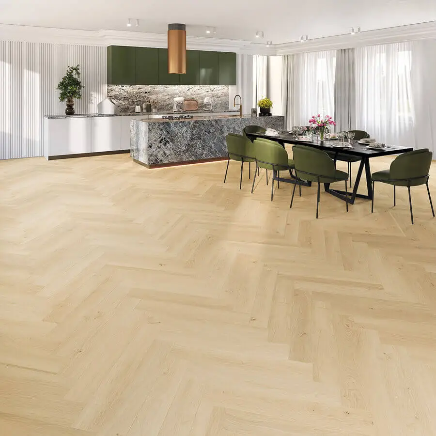 (Note: De facbrikant adviseert een vochtscherm te plaatsen onder de aanbiedings visgraat pvcvloer)