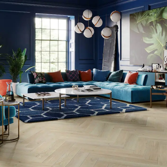 Een lichte vloer is erg goed te combineren met veel andere kleuren. Zo zorgen donkere meubelen voor een mooi contrast waardoor de vloer nog beter tot zijn recht komt. Let wel op dat veel donkere meubelen je kamer weer wat kleiner doet lijken. De lichte vloer is ook uitstekend te combineren met allerlei kleuren op de wand. Iedere kleur op de wand zal zijn weerslag hebben op de vloer en geeft deze plaatselijk ook een wat andere uitstraling mee.