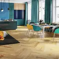 Wil je wat meer rust creëren dan is de gekozen vloer een perfecte keuze. Deze naturel kleurige vloer geeft daarnaast vrolijkheid en energie aan de ruimte en werkt in donkere ruimtes licht verhelderend.
