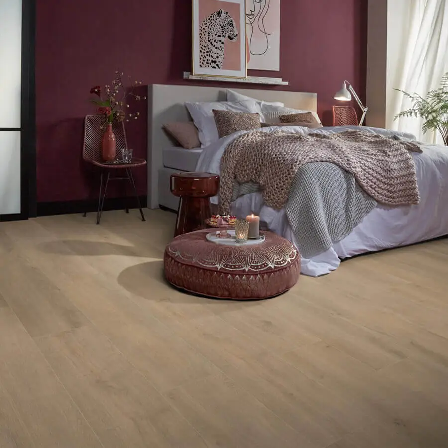 Wil je wat meer rust creëren dan is de gekozen vloer een perfecte keuze. Deze naturel kleurige vloer geeft daarnaast vrolijkheid en energie aan de ruimte en werkt in donkere ruimtes licht verhelderend.