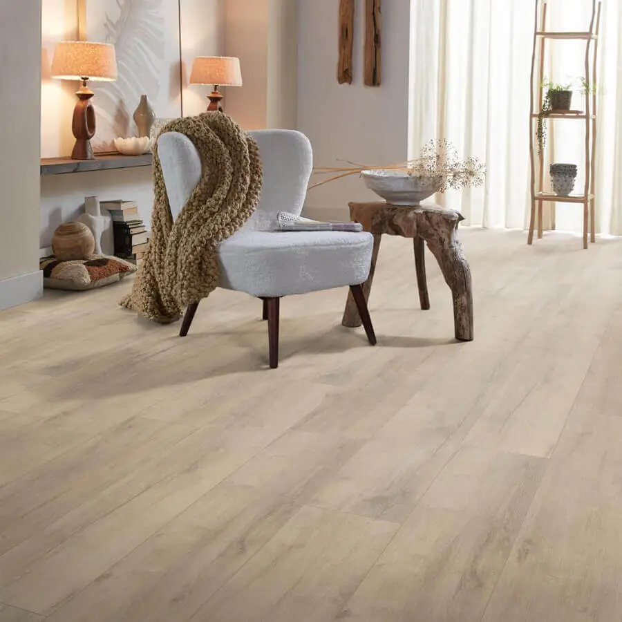 Een lichte vloer zoals deze vloer maakt de ruimtes optisch groter en zorgt voor een tijdloze, heldere uitstraling. Hierdoor is deze kleur uitermate geschikt kleinere ruimtes of ruimtes met weinig lichtinval.