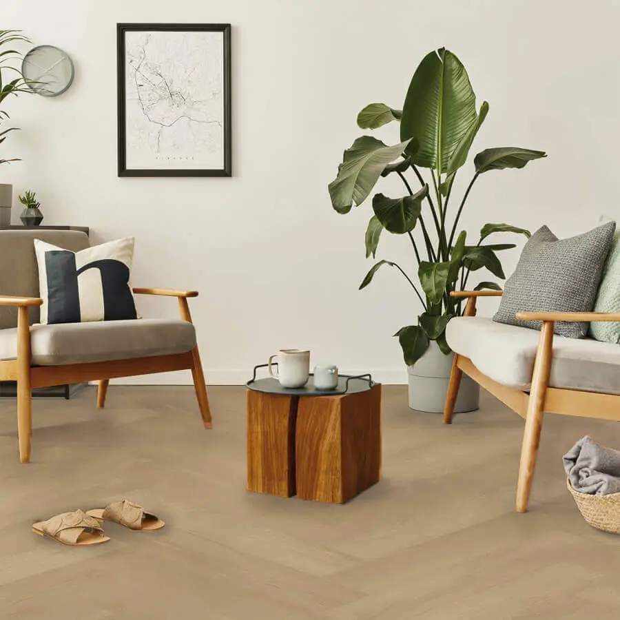 Wil je wat meer rust creëren dan is de gekozen vloer een perfecte keuze. Deze naturel kleurige vloer geeft daarnaast vrolijkheid en energie aan de ruimte en werkt in donkere ruimtes licht verhelderend.