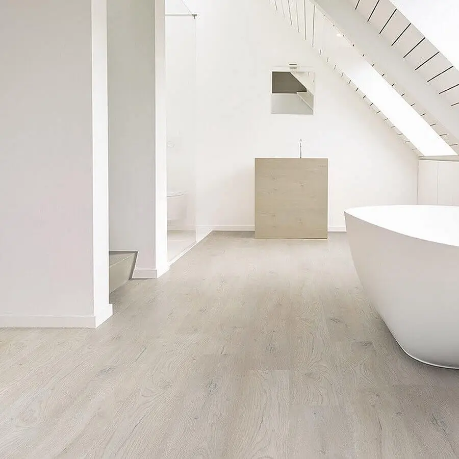 Een lichte vloer zoals deze vloer maakt de ruimtes optisch groter en zorgt voor een tijdloze, heldere uitstraling. Hierdoor is deze kleur uitermate geschikt kleinere ruimtes of ruimtes met weinig lichtinval.