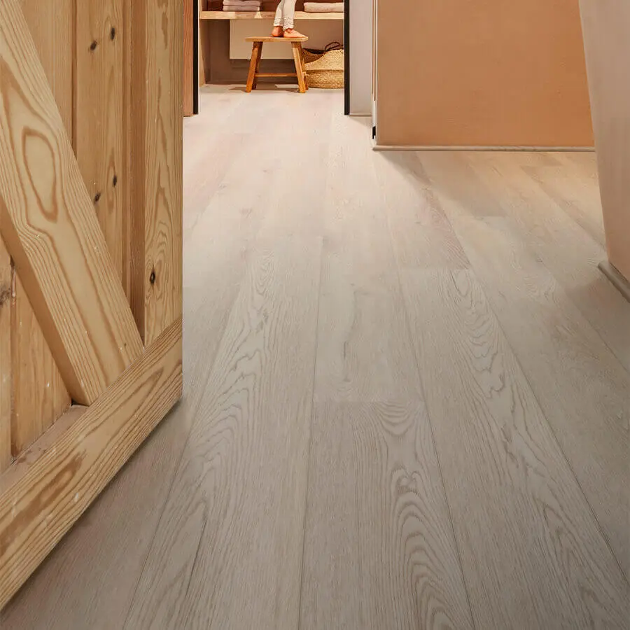 Een lichte vloer zoals deze vloer maakt de ruimtes optisch groter en zorgt voor een tijdloze, heldere uitstraling. Hierdoor is deze kleur uitermate geschikt kleinere ruimtes of ruimtes met weinig lichtinval.