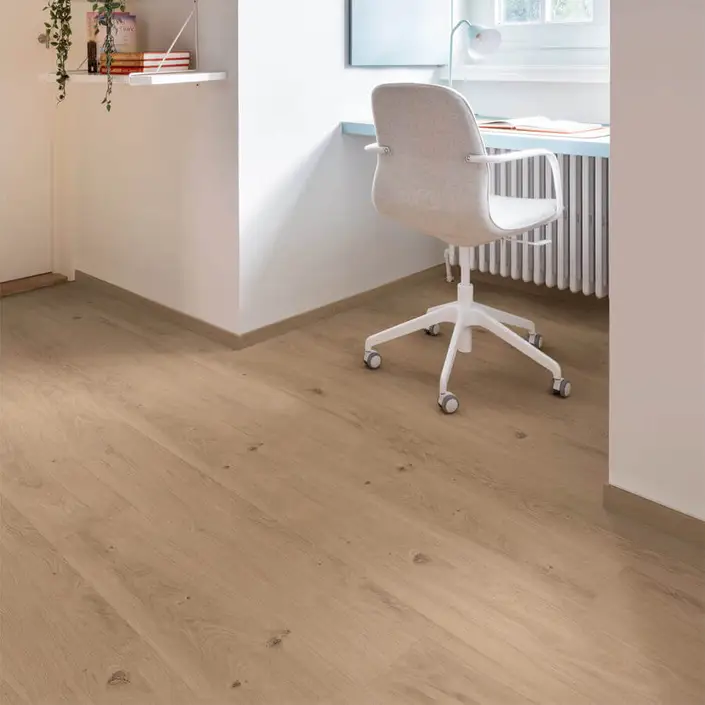 De naturelle kleur laat zich makkelijk combineren met vele andere kleuren en stijlen. Zo kun je gemakkelijk een zeer strak en moderne inrichting met deze vloer combineren. Hoogglans witte meubelen of meubelen met rvs, alles past erbij. Toch liever een klassiekere inrichting? Ook dat is prima te combineren! Al met al vinden wij deze kleur vloer het makkelijkst combineren van alle vloeren.