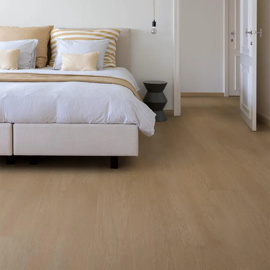 Wil je wat meer rust creëren dan is de gekozen vloer een perfecte keuze. Deze naturel kleurige vloer geeft daarnaast vrolijkheid en energie aan de ruimte en werkt in donkere ruimtes licht verhelderend.