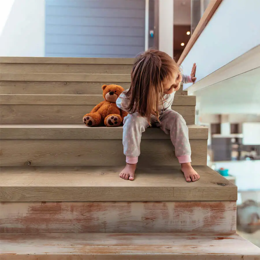 Om te bepalen hoeveel stuks van de COREtec Stairs Box D Afdekkappen 804 Lumber je nodig hebt tel je het aantal open treden.