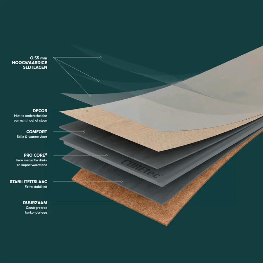 - Stel de COREtec vloer niet bloot aan temperaturen van meer dan 60 graden celcius.