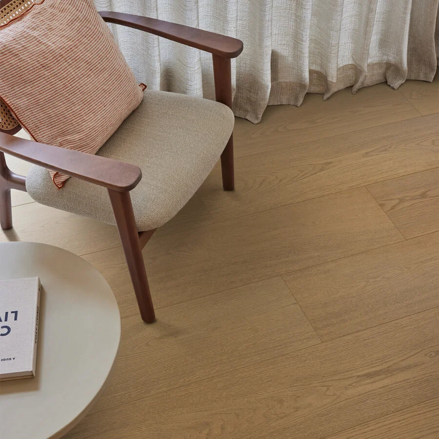 Zo geeft bijvoorbeeld een natuurlijk gekleurde vloer je huis een zachte, tijdloze uitstraling. Denk aan naturel eiken, zandtinten of een warme beige ondertoon. Het effect: meer rust, minder harde contrasten en een interieur dat als één geheel aanvoelt. Vooral in woonkamers en open keukens werkt een natuurlijke kleur als een verbindende factor tussen vloer, meubels, wanden en accessoires.