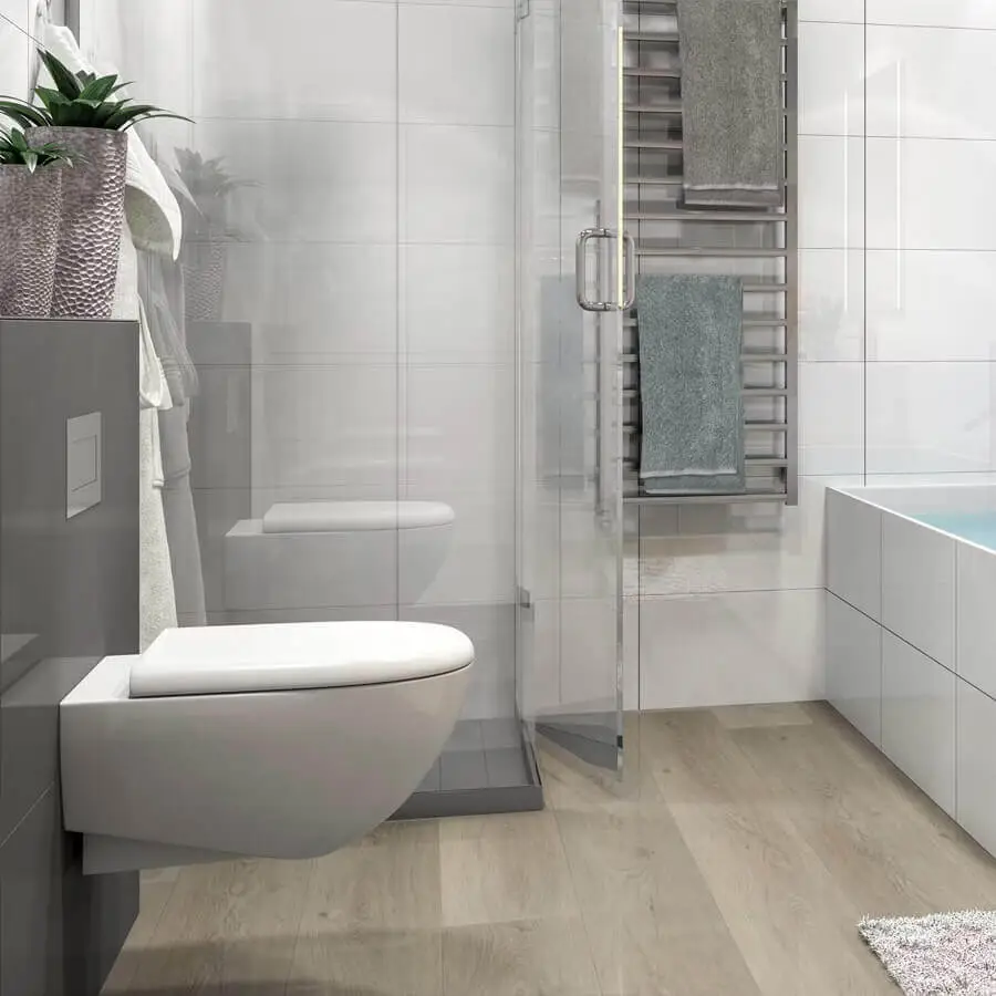 Een lichte vloer zoals deze vloer maakt de ruimtes optisch groter en zorgt voor een tijdloze, heldere uitstraling. Hierdoor is deze kleur uitermate geschikt kleinere ruimtes of ruimtes met weinig lichtinval.
