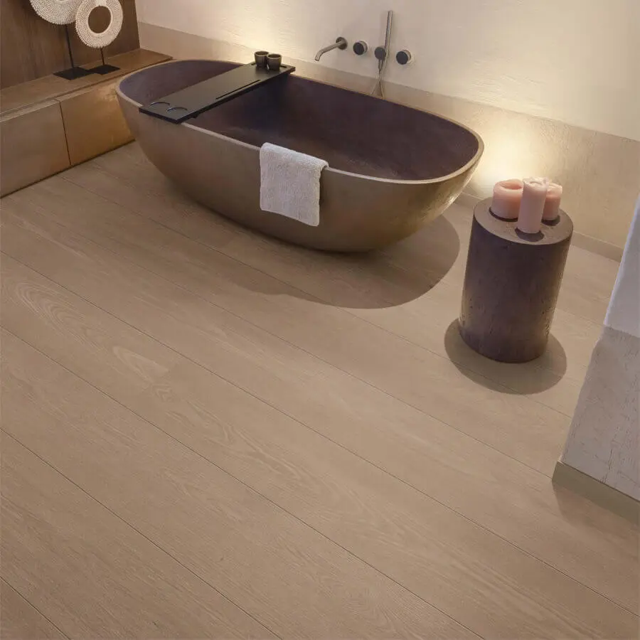 Als de betonnen ondergrond ontdaan is van uitsteeksels, dan kan je deze vloer direct op de betonnen ondergrond plaatsen. Heb je een tegelvloer? Geen probleem. Ook hier kun je de COREtec vloer direct op plaatsen zonder gebruik te hoeven maken van een ondervloer.