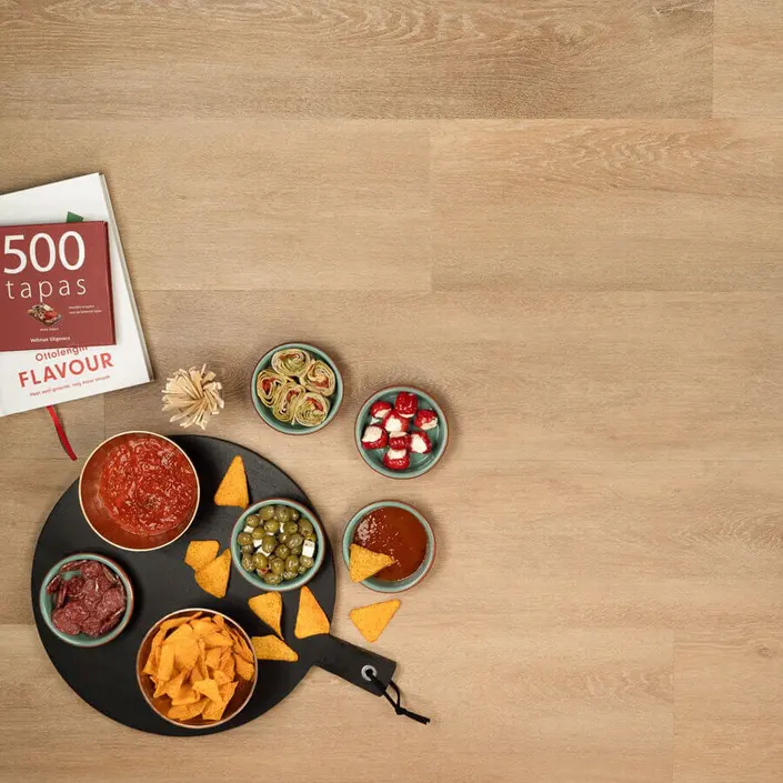 Wil je wat meer rust creëren dan is de gekozen vloer een perfecte keuze. Deze naturel kleurige vloer geeft daarnaast vrolijkheid en energie aan de ruimte en werkt in donkere ruimtes licht verhelderend.