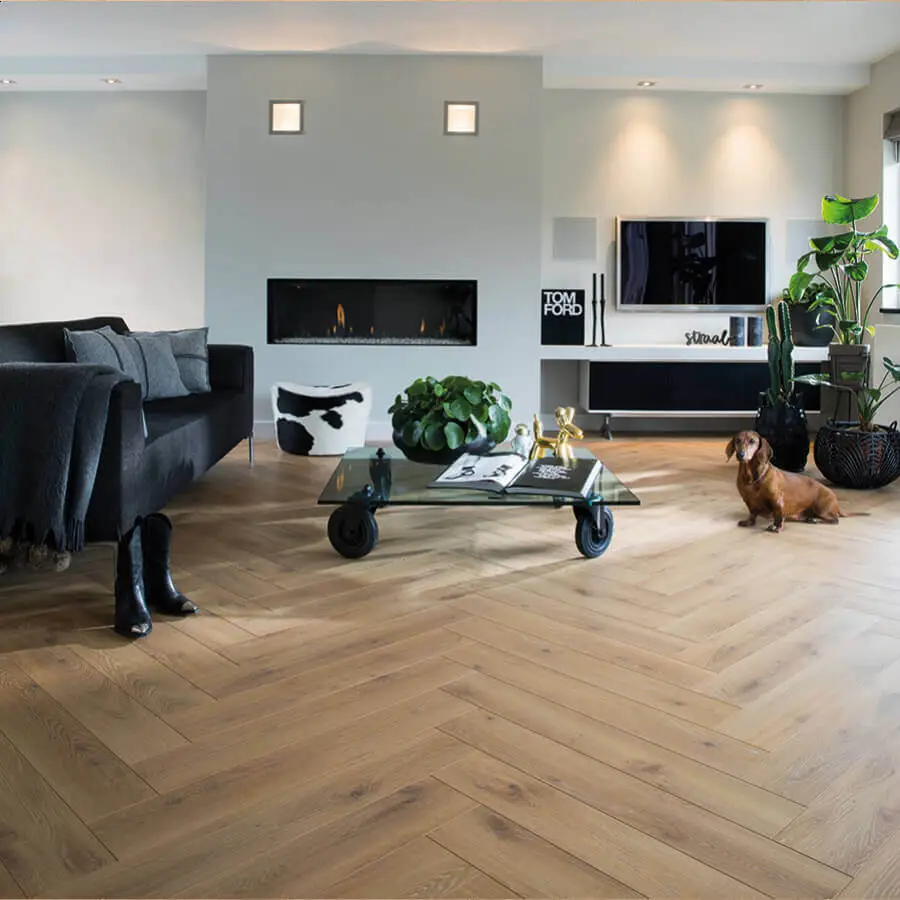 Een lichte vloer zoals deze vloer maakt de ruimtes optisch groter en zorgt voor een tijdloze, heldere uitstraling. Hierdoor is deze kleur uitermate geschikt kleinere ruimtes of ruimtes met weinig lichtinval.