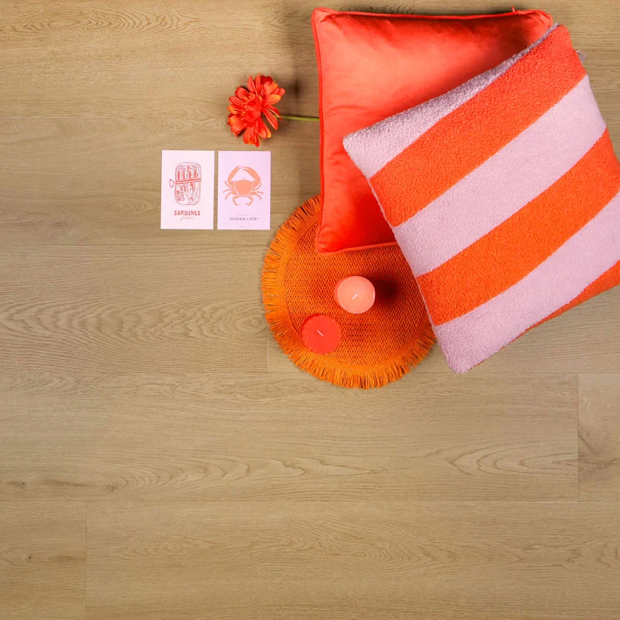 Zo geeft bijvoorbeeld een natuurlijk gekleurde vloer je huis een zachte, tijdloze uitstraling. Denk aan naturel eiken, zandtinten of een warme beige ondertoon. Het effect: meer rust, minder harde contrasten en een interieur dat als één geheel aanvoelt. Vooral in woonkamers en open keukens werkt een natuurlijke kleur als een verbindende factor tussen vloer, meubels, wanden en accessoires.