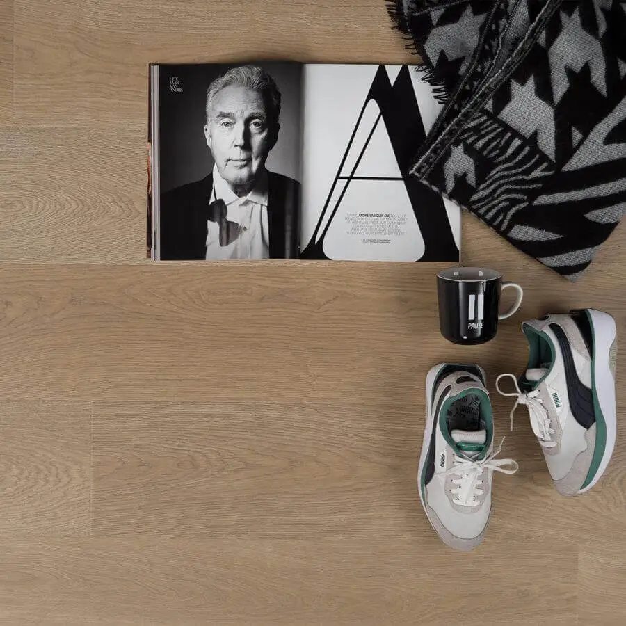 De naturelle kleur laat zich makkelijk combineren met vele andere kleuren en stijlen. Zo kun je gemakkelijk een zeer strak en moderne inrichting met deze vloer combineren. Hoogglans witte meubelen of meubelen met rvs, alles past erbij. Toch liever een klassiekere inrichting? Ook dat is prima te combineren! Al met al vinden wij deze kleur vloer het makkelijkst combineren van alle vloeren.