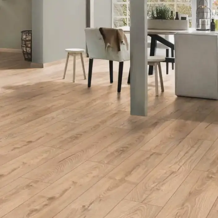 De naturelle kleur laat zich makkelijk combineren met vele andere kleuren en stijlen. Zo kun je gemakkelijk een zeer strak en moderne inrichting met deze vloer combineren. Hoogglans witte meubelen of meubelen met rvs, alles past erbij. Toch liever een klassiekere inrichting? Ook dat is prima te combineren! Al met al vinden wij deze kleur vloer het makkelijkst combineren van alle vloeren.