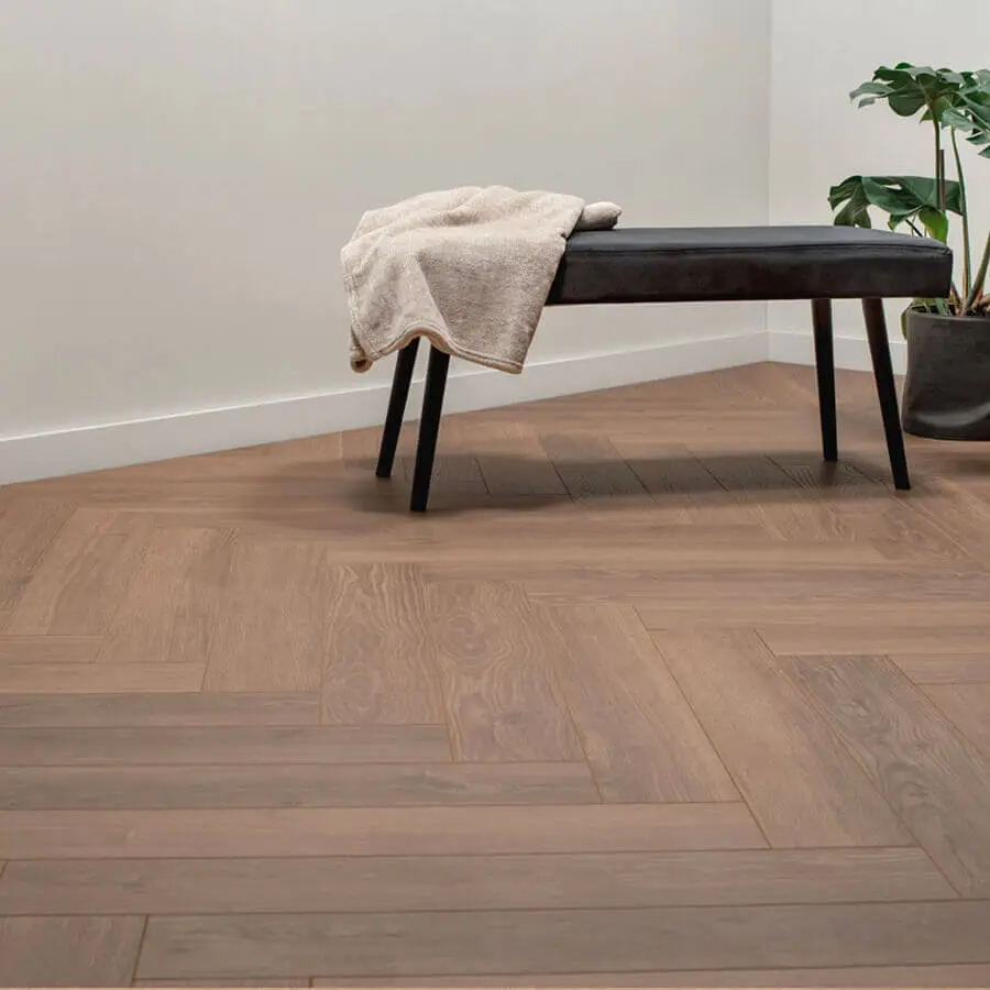 • Omschrijving FLOER Hybride laminaat Walvisgraat FLR-1613 Bultrug Bruin