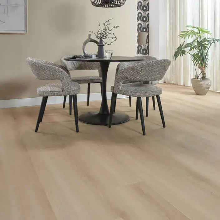 Een lichte vloer zoals deze vloer maakt de ruimtes optisch groter en zorgt voor een tijdloze, heldere uitstraling. Hierdoor is deze kleur uitermate geschikt kleinere ruimtes of ruimtes met weinig lichtinval.