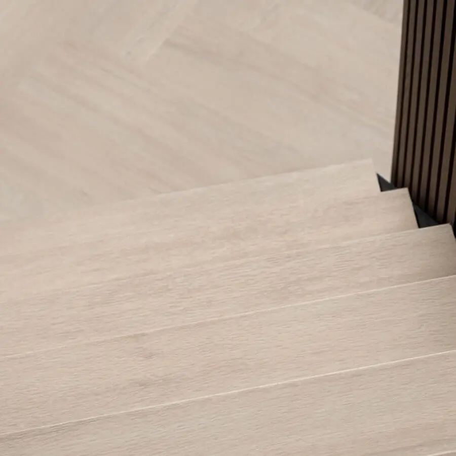 Een lichte vloer zoals deze vloer maakt de ruimtes optisch groter en zorgt voor een tijdloze, heldere uitstraling. Hierdoor is deze kleur uitermate geschikt kleinere ruimtes of ruimtes met weinig lichtinval.