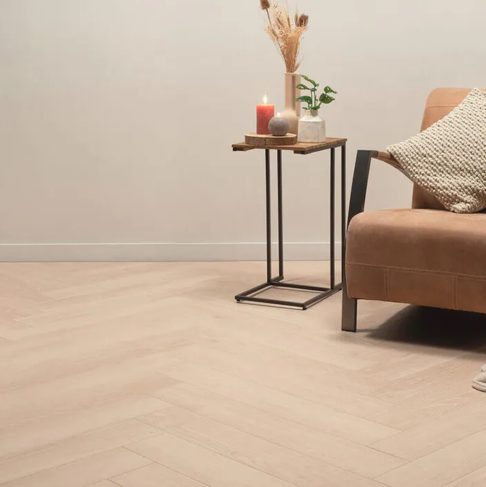 Een lichte vloer zoals deze vloer maakt de ruimtes optisch groter en zorgt voor een tijdloze, heldere uitstraling. Hierdoor is deze kleur uitermate geschikt kleinere ruimtes of ruimtes met weinig lichtinval.
