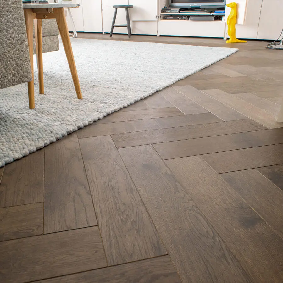 • Omschrijving Floer Walvisgraat Parket Eiken Noestvrij Carbon Zwart Geolied 80x16 cm