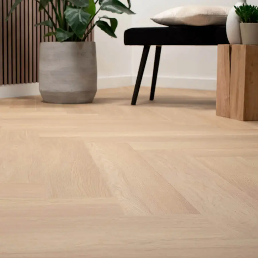 Een lichte vloer zoals deze vloer maakt de ruimtes optisch groter en zorgt voor een tijdloze, heldere uitstraling. Hierdoor is deze kleur uitermate geschikt kleinere ruimtes of ruimtes met weinig lichtinval.