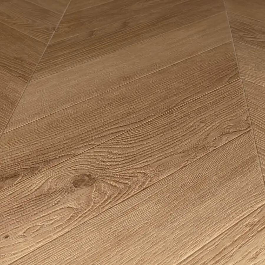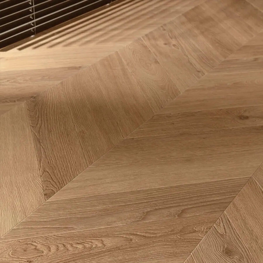 onder een vaste hoek van 45 of 60 graden in een V-vorm gelegd. Hierdoor ontstaat een symmetrisch, strak lijnenspel dat zorgt voor rust en luxe in elke ruimte. Dankzij Floorify kun je dit klassieke patroon nu eenvoudig zelf (laten) leggen, zonder gedoe met lijm of complexe patronen.