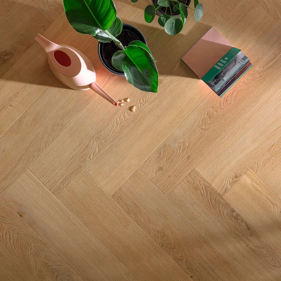 Ontdek nu zelf de kwaliteit, duurzaamheid en stijlvolle uitstraling van deze Floorify Visgraat Gluedown PVC vloer!