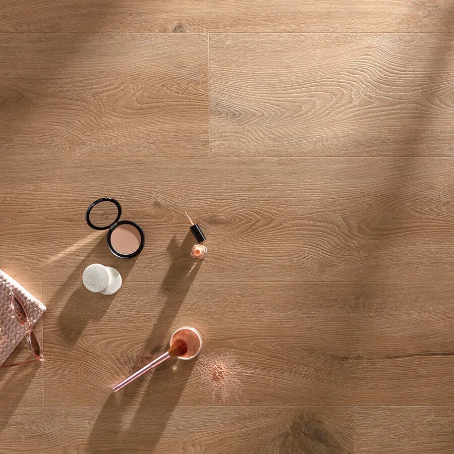 + Sterk: Jarenlang plezier van je vloer door de slijtvaste toplaag.