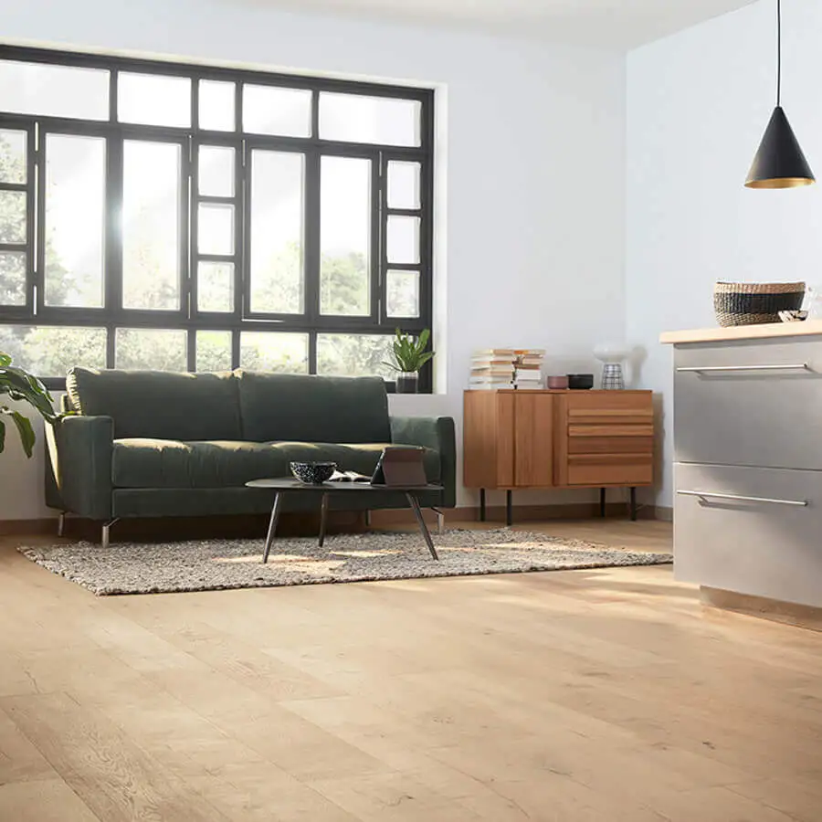 Een lichte vloer zoals deze vloer maakt de ruimtes optisch groter en zorgt voor een tijdloze, heldere uitstraling. Hierdoor is deze kleur uitermate geschikt kleinere ruimtes of ruimtes met weinig lichtinval.