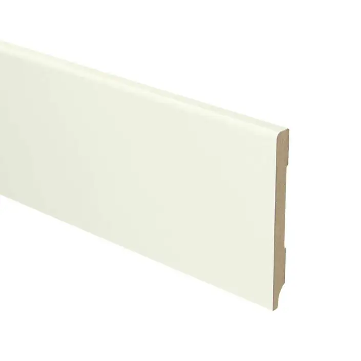 De MDF Plint Recht 80x9 mm RAL9010 is een, in de kleur RAL 9010, afgelakte plint en een prachtige afwerking voor uw vloer. De plint monteer je met High Tack lijm snel en gemakkelijk op de muur. Door de plint na het monteren en eventueel afkitten nog één keer te schilderen verdwijnen alle naden etc en geeft het een zeer chique uitstraling.