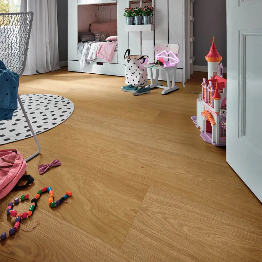 Wil je wat meer rust creëren dan is de gekozen vloer een perfecte keuze. Deze naturel kleurige vloer geeft daarnaast vrolijkheid en energie aan de ruimte en werkt in donkere ruimtes licht verhelderend.