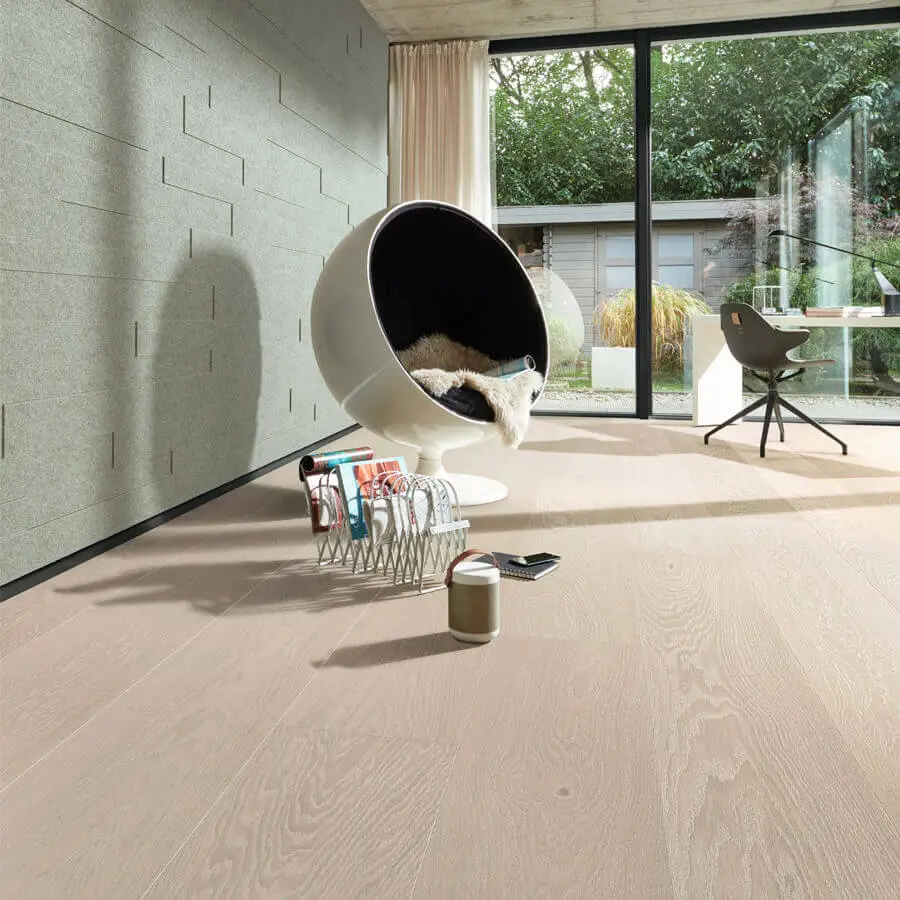 Een lichte vloer zoals deze vloer maakt de ruimtes optisch groter en zorgt voor een tijdloze, heldere uitstraling. Hierdoor is deze kleur uitermate geschikt kleinere ruimtes of ruimtes met weinig lichtinval.