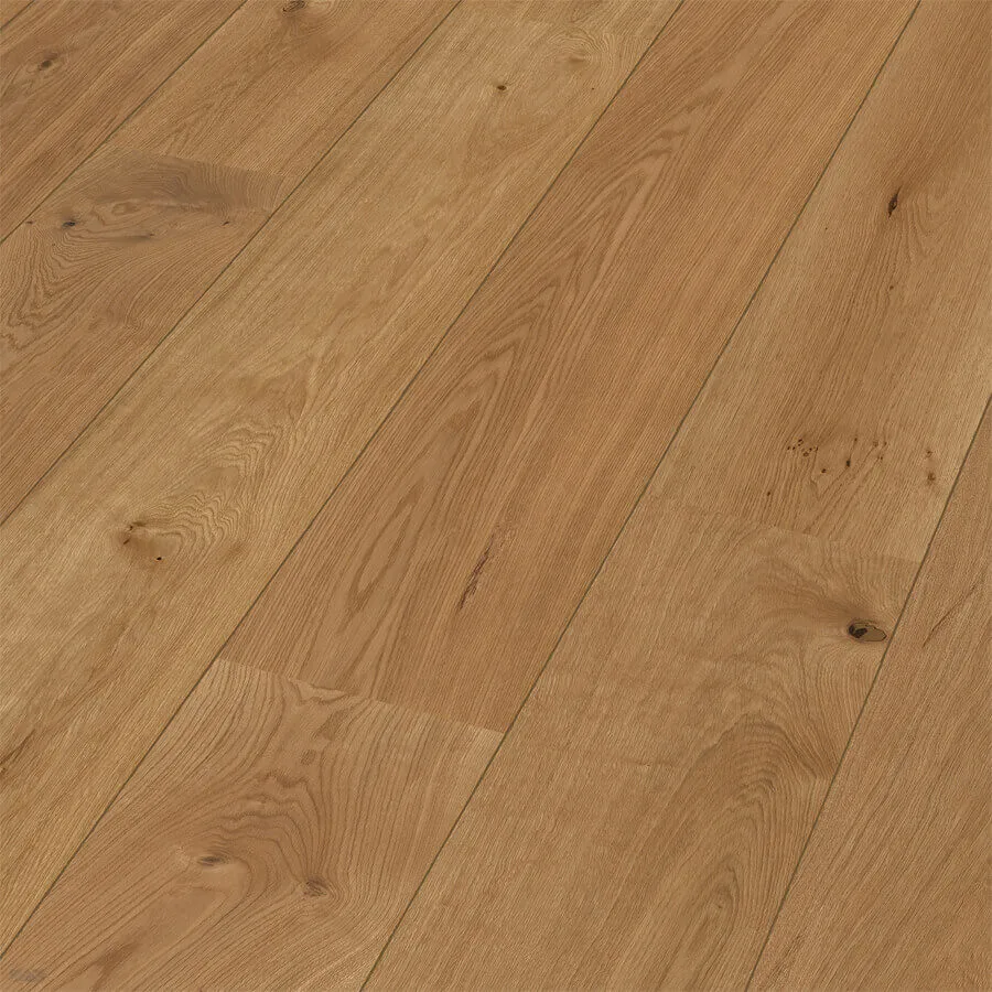 De fineerhouten toplaag van het Meister Lindura HD 400 - 320 Geolied Eik Levendig 8900 is afgewerkt met een Weartec Nature olie waardoor het een beschermend maar wel ademend oppervlak vormt. De natuurolie haalt de nerven en structuur van het hout omhoog. De toplaag van edelhout gecombineerd met de Wood-Powder techniek op een HDF kern is uitgevoerd met een MasterClic Plus klikverbinding en zorgt ervoor dat deze geoliede Meister Lindura vloer snel en gemakkelijk geplaatst kan worden.