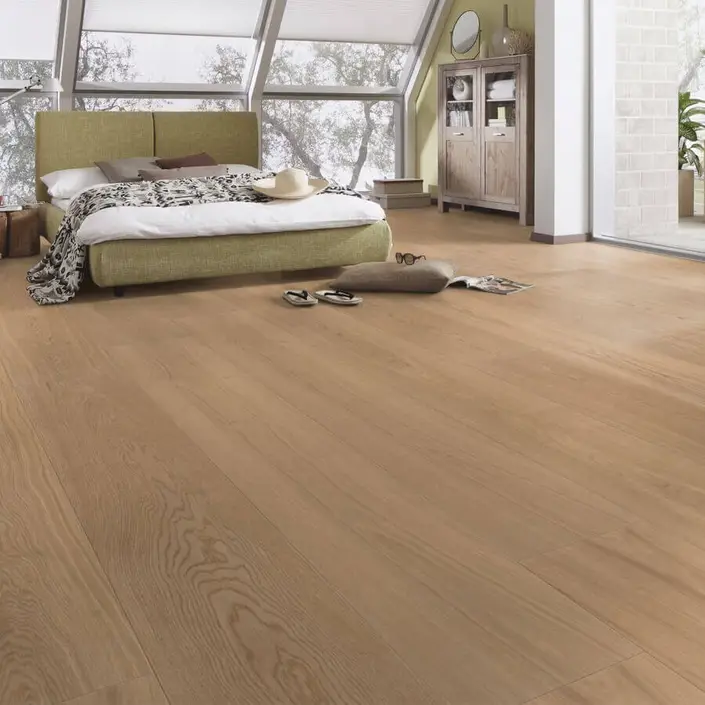 De naturelle kleur laat zich makkelijk combineren met vele andere kleuren en stijlen. Zo kun je gemakkelijk een zeer strak en moderne inrichting met deze vloer combineren. Hoogglans witte meubelen of meubelen met rvs, alles past erbij. Toch liever een klassiekere inrichting? Ook dat is prima te combineren! Al met al vinden wij deze kleur vloer het makkelijkst combineren van alle vloeren.