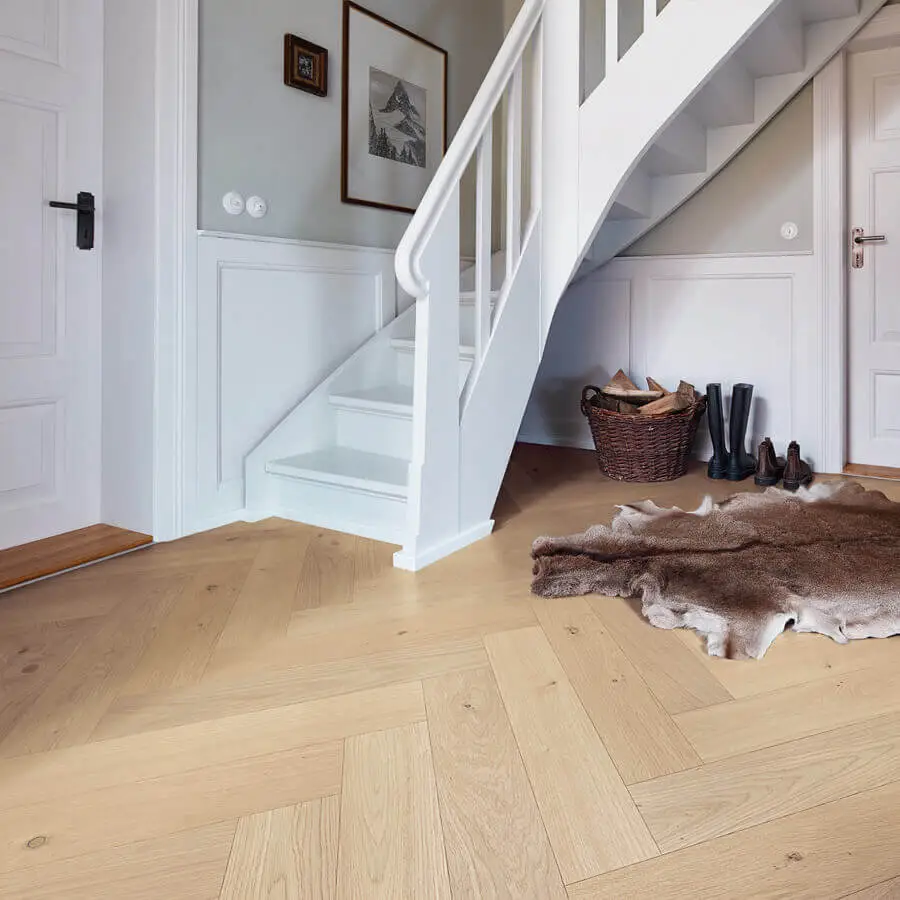 De naturelle kleur laat zich makkelijk combineren met vele andere kleuren en stijlen. Zo kun je gemakkelijk een zeer strak en moderne inrichting met deze vloer combineren. Hoogglans witte meubelen of meubelen met rvs, alles past erbij. Toch liever een klassiekere inrichting? Ook dat is prima te combineren! Al met al vinden wij deze kleur vloer het makkelijkst combineren van alle vloeren.