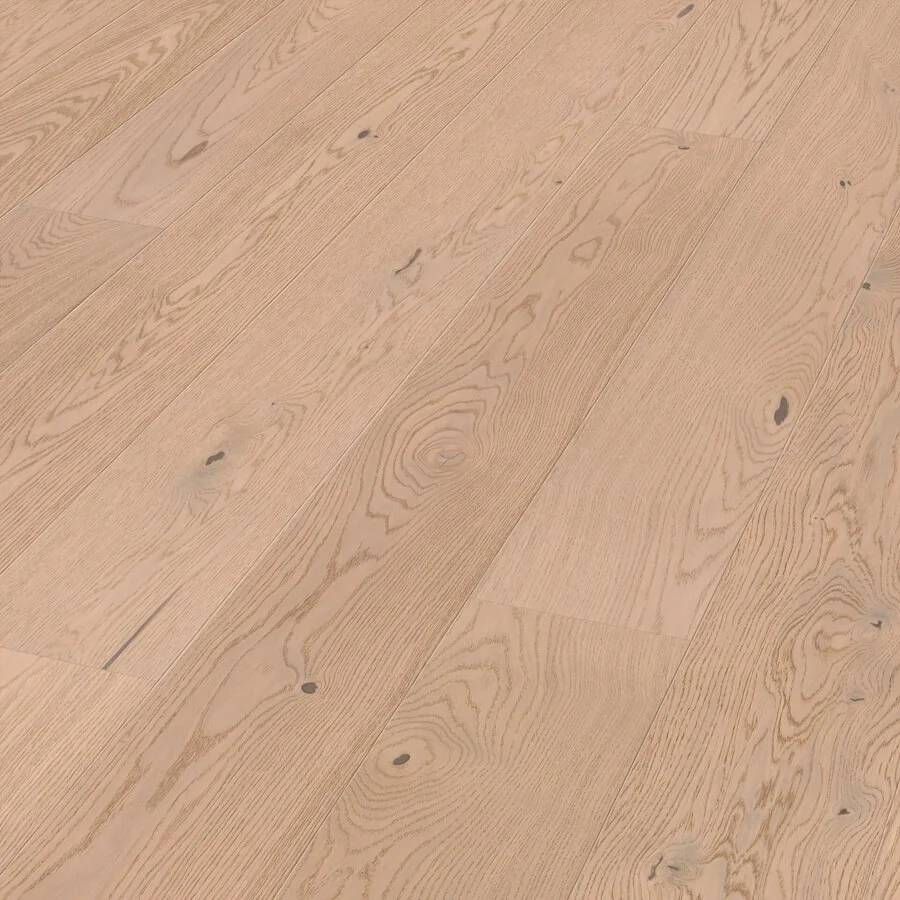 De houtsortering "levendig" betekend dat Meister bewust planken met kleuren- en structuurspel in deze vloer combineert. Hierdoor wordt het natuurlijke karakter van het hout benadrukt. Gezonde vergroeide knoesten spint en bruinkern geven de planken daarnaast een levendige uitstraling. Knoesten worden gecorrigeerd. Er kunnen hier en daar kleine, niet corrigeerbare knoesten en groeven voorkomen in de Meister NatureFlex HD100 Eik Levendig 20014 fineer houten vloer.
