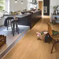 Wil je wat meer rust creëren dan is de gekozen vloer een perfecte keuze. Deze naturel kleurige vloer geeft daarnaast vrolijkheid en energie aan de ruimte en werkt in donkere ruimtes licht verhelderend.