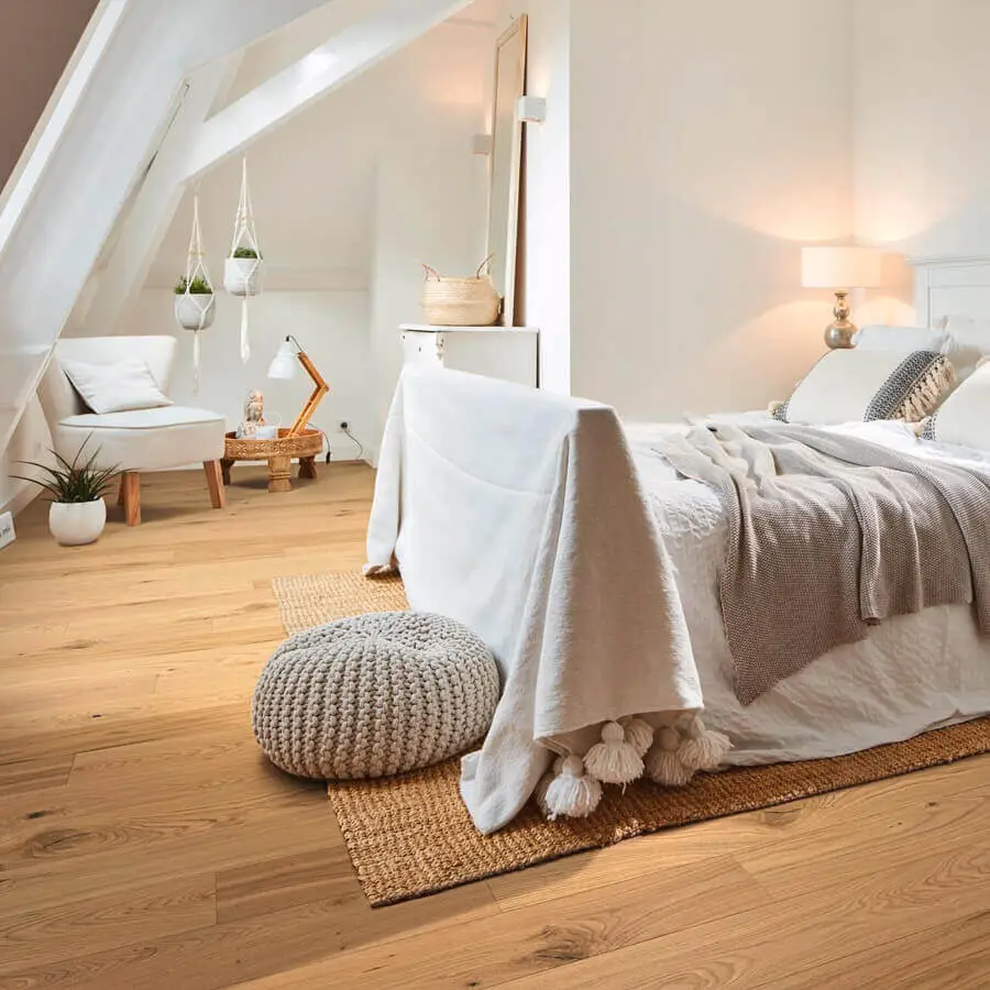 De naturelle kleur laat zich makkelijk combineren met vele andere kleuren en stijlen. Zo kun je gemakkelijk een zeer strak en moderne inrichting met deze vloer combineren. Hoogglans witte meubelen of meubelen met rvs, alles past erbij. Toch liever een klassiekere inrichting? Ook dat is prima te combineren! Al met al vinden wij deze kleur vloer het makkelijkst combineren van alle vloeren.