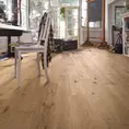 De houtsortering authentic betekend dat de vloer een authentieke uitstraling heeft die het rustieke benaderd. Hierdoor ontstaat een wat rustige rustiek ogende vloer. Aan het spel van kleuren en structuren, spinthout en gezonde markente knoesten waar geen grens wordt gesteld aan het aantal en omvang geven de planken daarnaast een authentieke en natuurlijke uitstraling. De geborstelde structuur geeft een heerlijk houten gevoel aan Meister PS300 Eik Authentic Greige 9006 parketvloer.