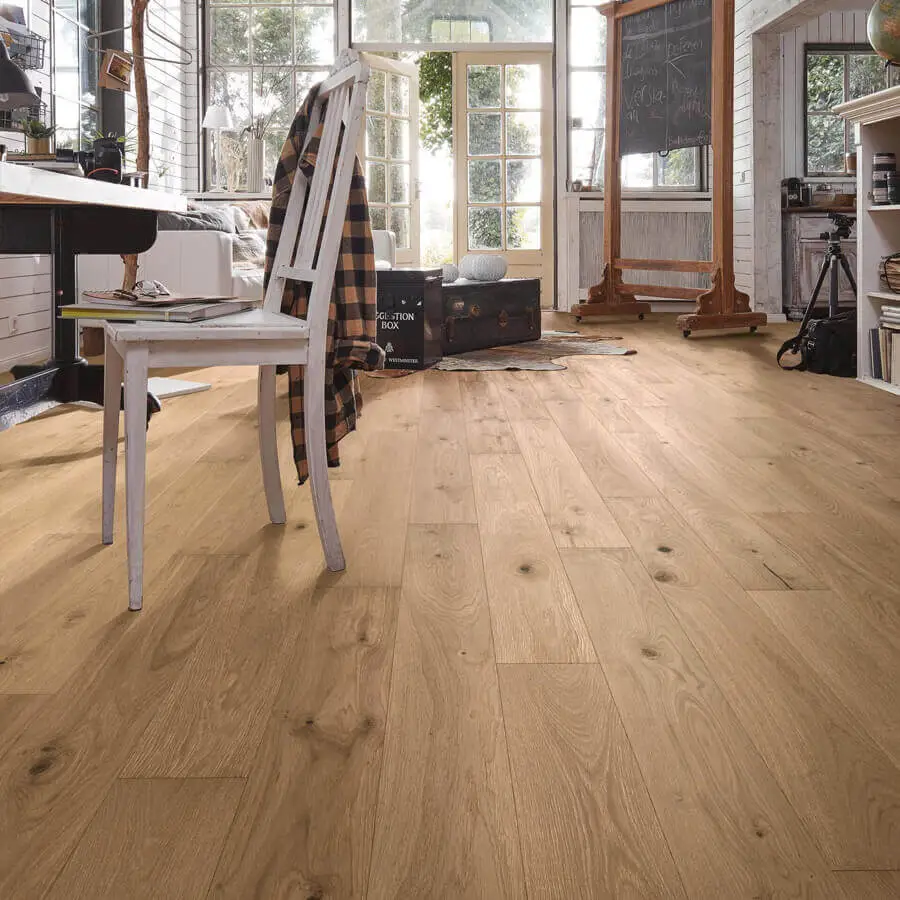 De naturelle kleur laat zich makkelijk combineren met vele andere kleuren en stijlen. Zo kun je gemakkelijk een zeer strak en moderne inrichting met deze vloer combineren. Hoogglans witte meubelen of meubelen met rvs, alles past erbij. Toch liever een klassiekere inrichting? Ook dat is prima te combineren! Al met al vinden wij deze kleur vloer het makkelijkst combineren van alle vloeren.