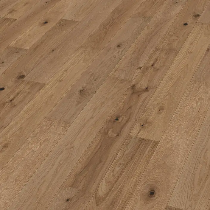De edelhouten toplaag van het Meister PS300 Eik Authentic Greige 9006 is afgewerkt met 7 lagen UV-geharde Acryllak. Deze ecologisch verantwoorde lak is formaldehyde vrij, taai en elastisch. Door de speciale samenstelling is de lak extreem robuust en gemakkelijk te reinigen. De toplaag van edelhout op een HDF kern is uitgevoerd met een MasterClic Plus klikverbinding en zorgt ervoor dat deze mat gelakte Meister PD450 parketvloer snel en gemakkelijk geplaatst kan worden.
