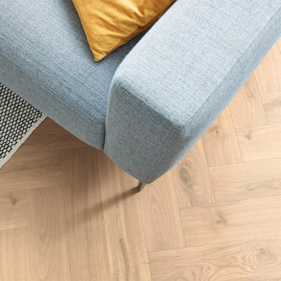 Een lichte vloer zoals deze vloer maakt de ruimtes optisch groter en zorgt voor een tijdloze, heldere uitstraling. Hierdoor is deze kleur uitermate geschikt kleinere ruimtes of ruimtes met weinig lichtinval.