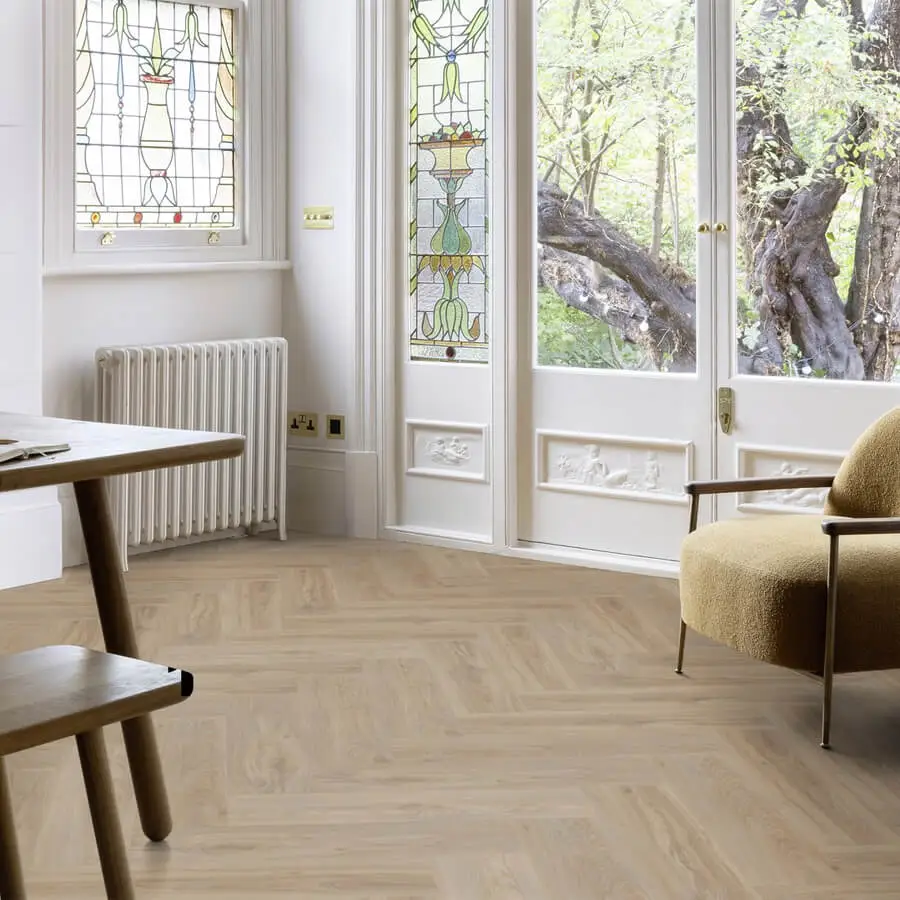 Zo geeft bijvoorbeeld een natuurlijk gekleurde vloer je huis een zachte, tijdloze uitstraling. Denk aan naturel eiken, zandtinten of een warme beige ondertoon. Het effect: meer rust, minder harde contrasten en een interieur dat als één geheel aanvoelt. Vooral in woonkamers en open keukens werkt een natuurlijke kleur als een verbindende factor tussen vloer, meubels, wanden en accessoires.