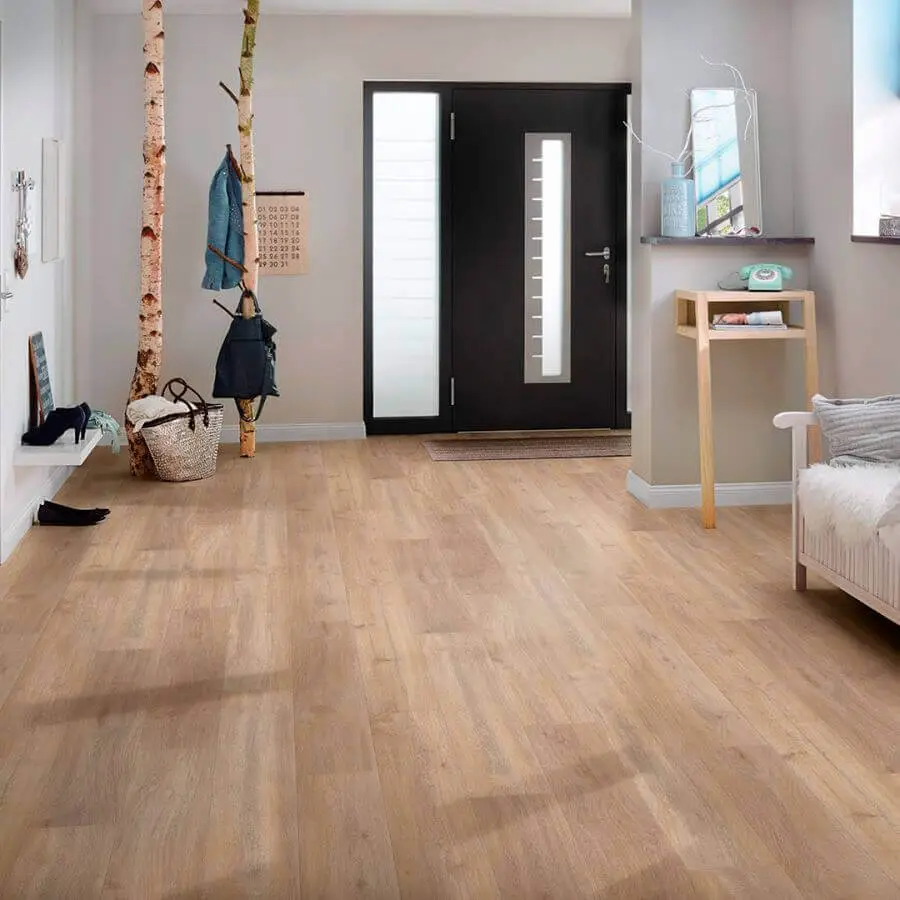 Een lichte vloer zoals deze vloer maakt de ruimtes optisch groter en zorgt voor een tijdloze, heldere uitstraling. Hierdoor is deze kleur uitermate geschikt kleinere ruimtes of ruimtes met weinig lichtinval.