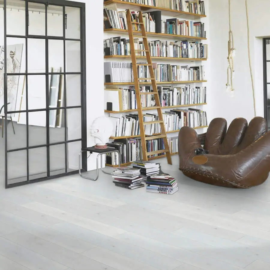 Een lichte vloer zoals deze vloer maakt de ruimtes optisch groter en zorgt voor een tijdloze, heldere uitstraling. Hierdoor is deze kleur uitermate geschikt kleinere ruimtes of ruimtes met weinig lichtinval.