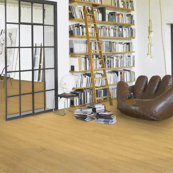 Wil je wat meer rust creëren dan is de gekozen vloer een perfecte keuze. Deze naturel kleurige vloer geeft daarnaast vrolijkheid en energie aan de ruimte en werkt in donkere ruimtes licht verhelderend.