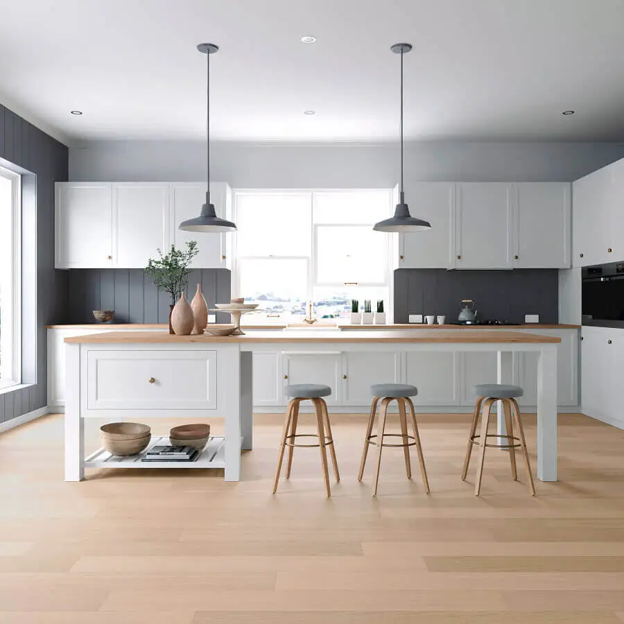 De naturelle kleur laat zich makkelijk combineren met vele andere kleuren en stijlen. Zo kun je gemakkelijk een zeer strak en moderne inrichting met deze vloer combineren. Hoogglans witte meubelen of meubelen met rvs, alles past erbij. Toch liever een klassiekere inrichting? Ook dat is prima te combineren! Al met al vinden wij deze kleur vloer het makkelijkst combineren van alle vloeren.