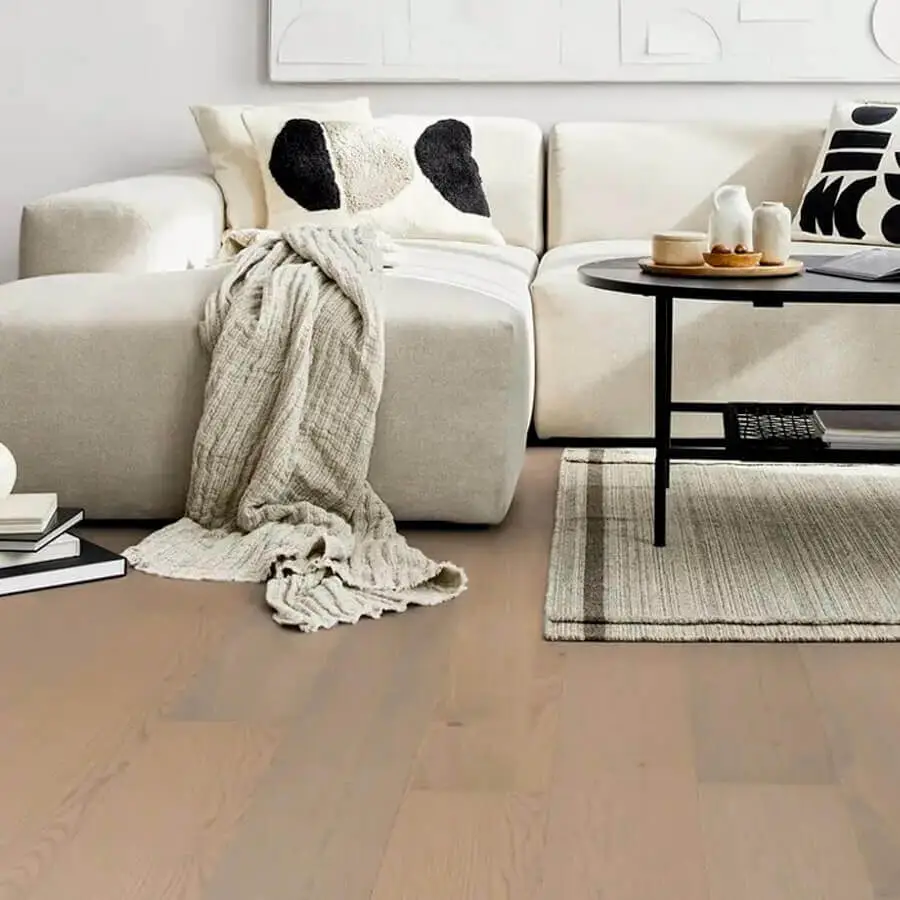 Een lichte vloer zoals deze vloer maakt de ruimtes optisch groter en zorgt voor een tijdloze, heldere uitstraling. Hierdoor is deze kleur uitermate geschikt kleinere ruimtes of ruimtes met weinig lichtinval.